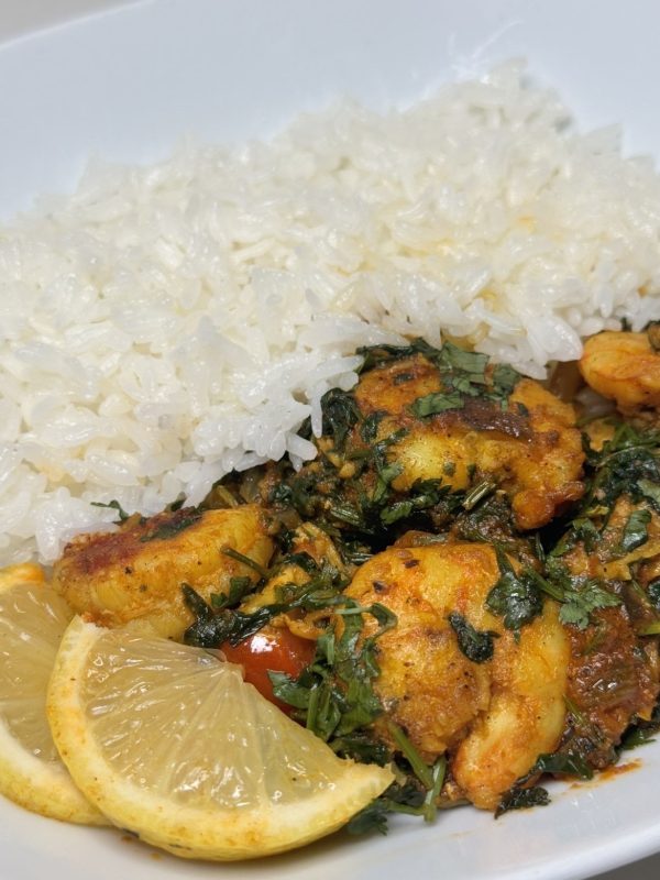 Fragrant biryani rice with marinated chicken, cooked low-fat.